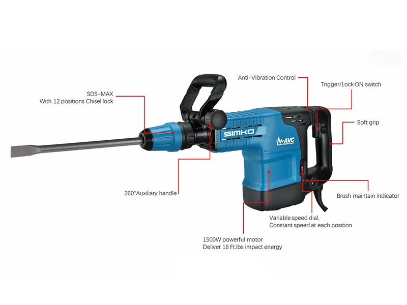 ● Конструкция с низким уровнем вибрации и шума, высокая энергия удара.