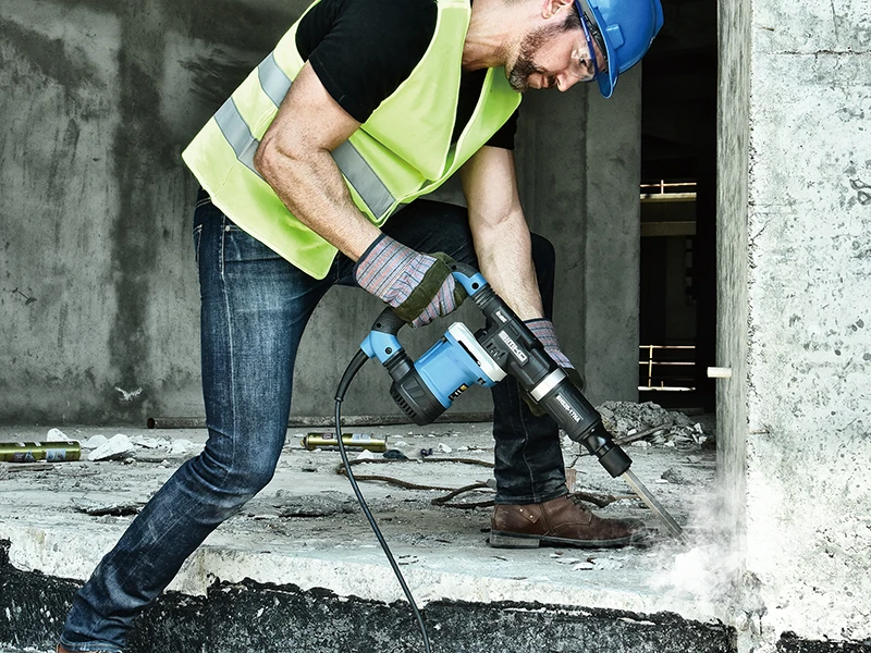 ● Угол долбления регулируется с помощью 12-ступенчатого фиксатора, что позволяет адаптировать инструмент к любой рабочей ситуации (например, при использовании зубил для плитки).
