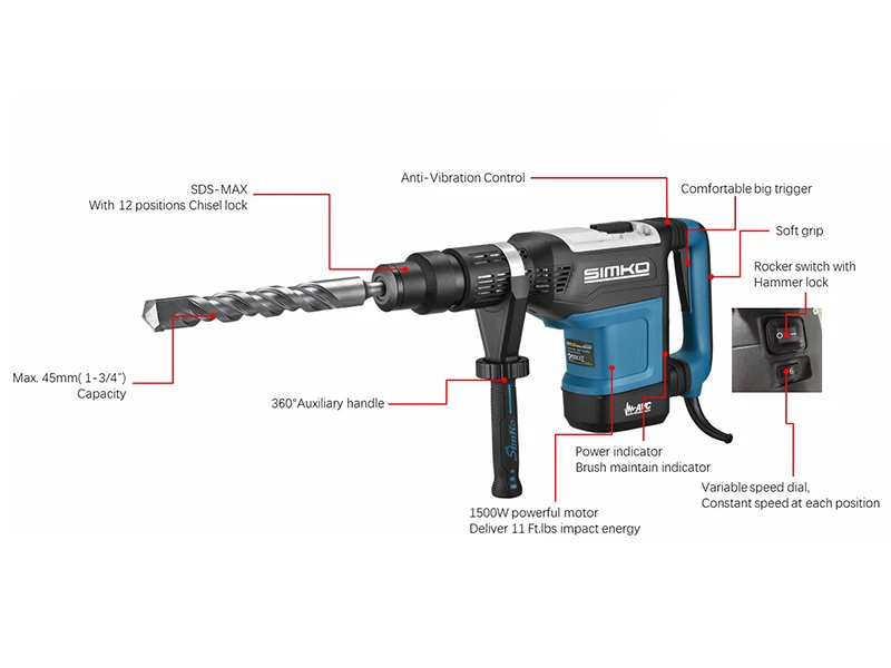 ● 6-ступенчатая регулировка скорости и постоянный контроль скорости для плавной регулировки скорости и частоты ударов для оптимальной производительности.