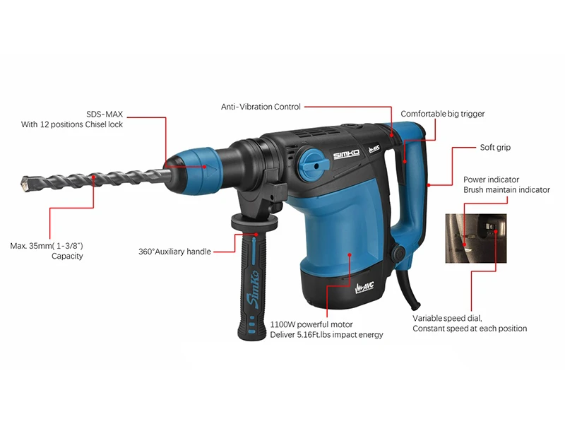 ● Конструкция с низким уровнем вибрации и шума, высокая энергия удара.